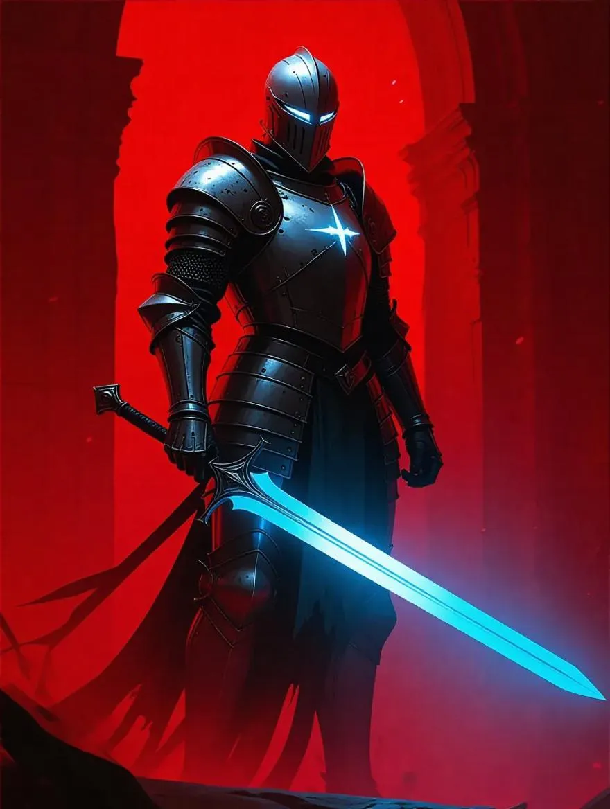 Generate AI-powered visuals of Knight Moonbeam in a blood-themed realm with striking white, black, and light-blue hues. Transform text prompts into epic fantasy art using Vivago.ai's AI image tools for dramatic, high-contrast scenes, vibrant color palettes, and professional-grade editing effects. Ideal for dark fantasy creators seeking immersive, stylized artwork.