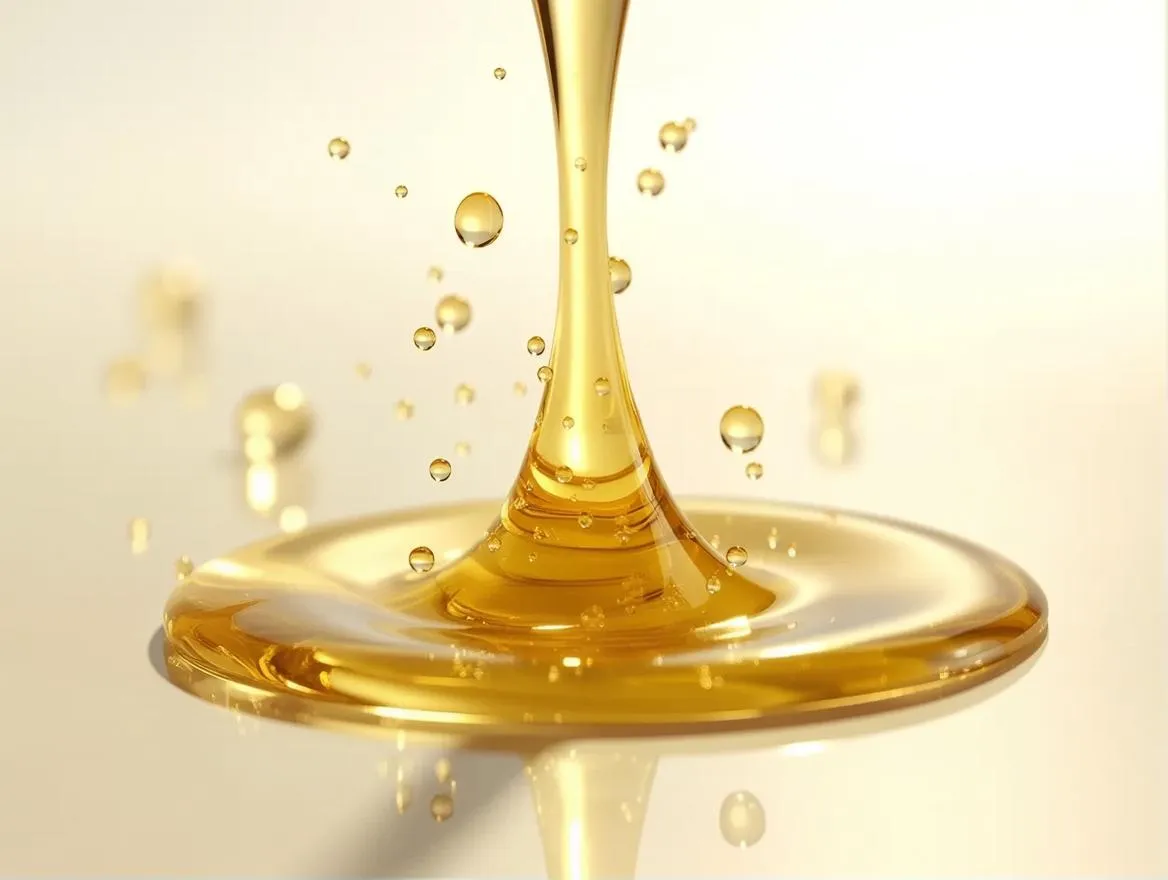 Generate stunning skincare visuals with AI: golden facial oil showcasing smooth, glassy droplets in soft lighting. Natural tones and clean white space highlight cosmetic textures. Perfect for professional product photography. Create slow-motion effects (a-motion low) effortlessly with vivago.ai's tools.