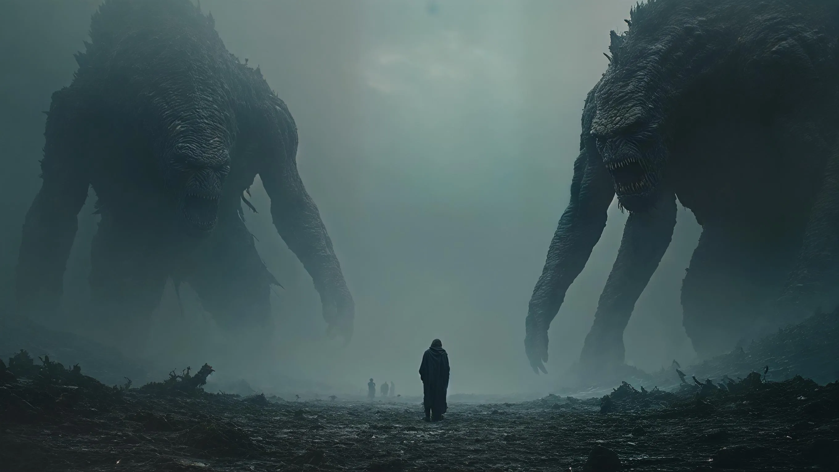Transform text into haunting visuals with AI. Generate dark cinematic scenes of mythological giants fading into dust, leaving scarred, silent worlds. Experience professional-grade AI art generation for epic, atmospheric imagery with Vivago.ai's creative tools. Create stunning visuals from prompts.