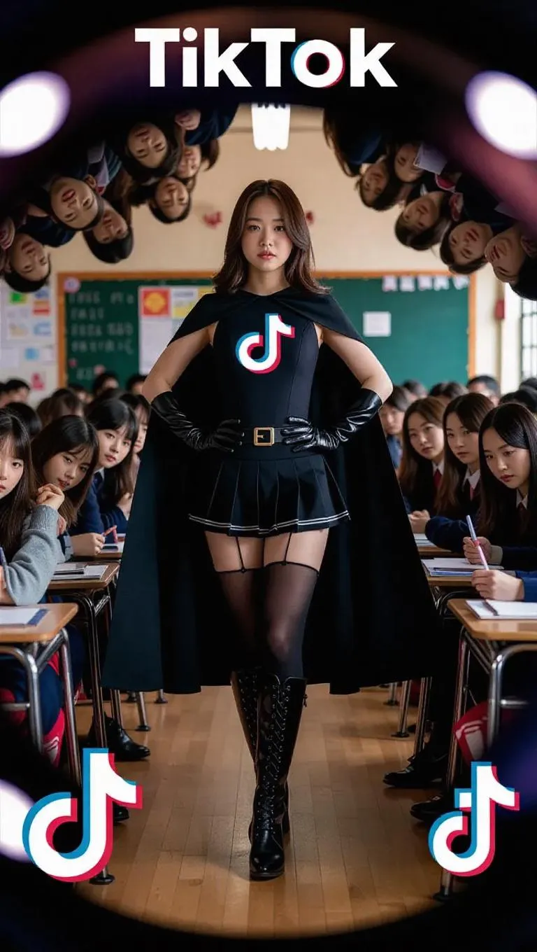 Experience a 360-degree 8K HDR cinematic journey with TikTok icon Lin Yufei as a superheroine, defending the platform in 60fps clarity. Her bold black-clad uniform, emblematic chest symbol, and dynamic stance embody unity, captured in flawless full-body lens detail for immersive visual storytelling and high-resolution activism.