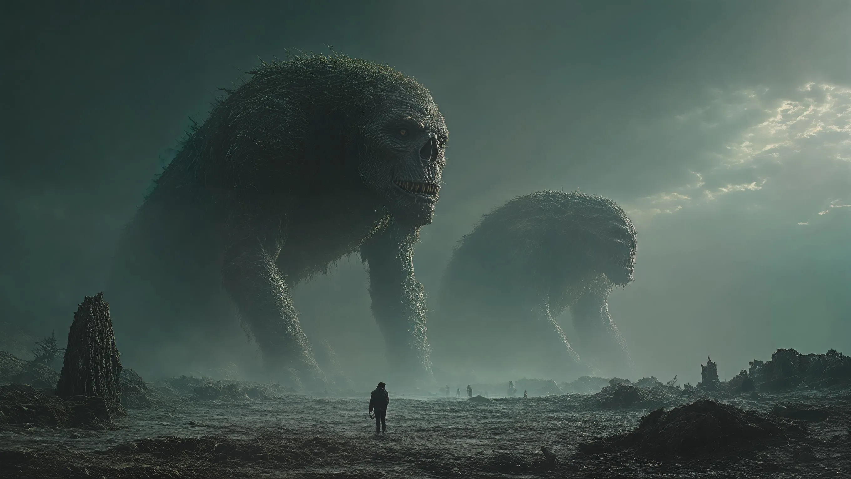Transform text into haunting visuals with AI. Generate dark cinematic scenes of mythological giants fading into dust, leaving scarred, silent worlds. Experience professional-grade AI art generation for epic, atmospheric imagery with Vivago.ai's creative tools. Create stunning visuals from prompts.