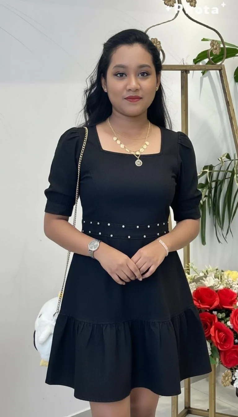 Generate a vibrant full-size Western mini dress in sleek black using our AI image generator. Create stylish black mini dress designs from text prompts for fashion inspiration. Perfect for digital wardrobes, social content, and AI-powered fashion visualization.