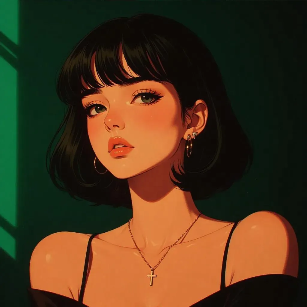 Create exquisite AI anime art capturing sadness with moody lighting. Experience timeless beauty in 1980s neo pop style: dark emerald palette, whippash curves, intricate details. Generate nostalgic wallpapers featuring directed poses, soft shadows, and sensitive stillness using VivaGO.ai's AI art tools. Perfect atmospheric down shots.