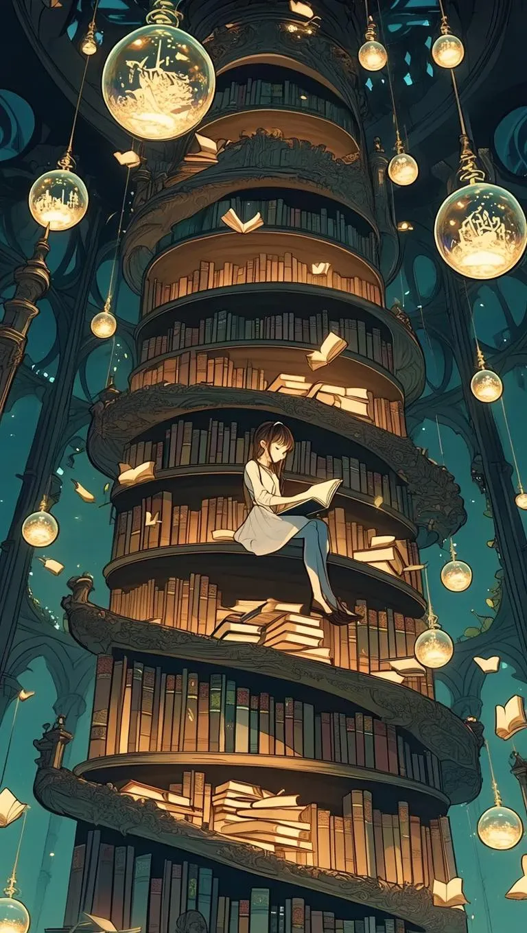 Discover a cinematic anime scene where a girl reads a self-writing journal in a candlelit tower with Escher-like geometry. Floating books, whispering forgotten tongues, and memory-filled glass orbs surround her. Rendered in luminous watercolor artistry, ink-soaked parchment tones, and ethereal light, this mystical moment blends reverent stillness with magical motion. Perfect for anime-inspired, cinematic, and watercolor visual storytelling.