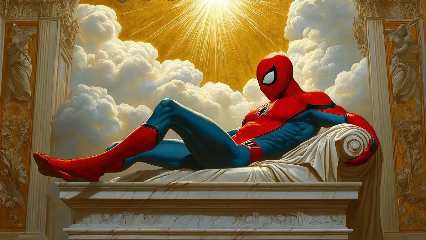 Transform text into AI-generated Renaissance fresco art with Vivago.ai. Experience Spider-Man reimagined in Michelangelo-esque grandeur: anatomical precision, chiaroscuro modeling, and Baroque drapery. Dynamic superhero imagery meets classical vanishing points, golden light, and web-strand perspectives. Crafted with AI-powered precision for comic book aesthetics fused with timeless artistry. Generate hyper-detailed masterpieces effortlessly.