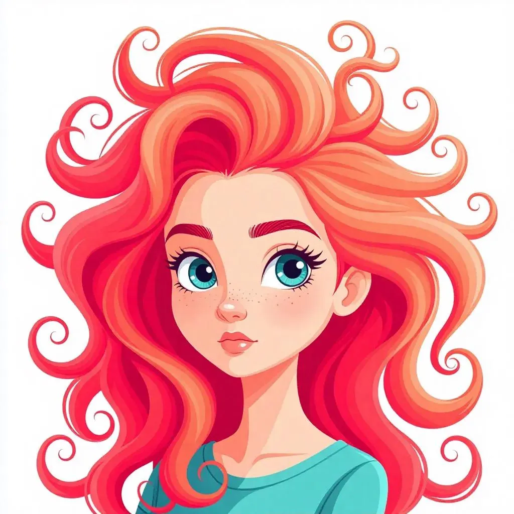 cartoon style, with coral hair hair made out of coral Tornado Step