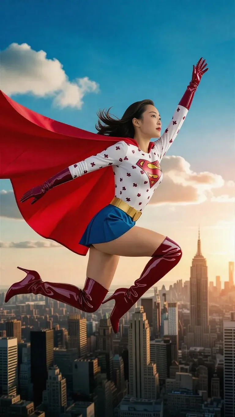 Experience movie-level special effects with 360° 4K HDR 60fps animation. Witness "Pearl Milk Tea Star"—a Chinese superheroine in pearl tea-themed tights, cup-patterned uniform, red cape, and glossy accessories. Detailed tea textures, flawless motion blur, glowing aura, and distortion-free flight. Perfect anatomy, dynamic poses. AI-powered tools for seamless superheroine transformations.