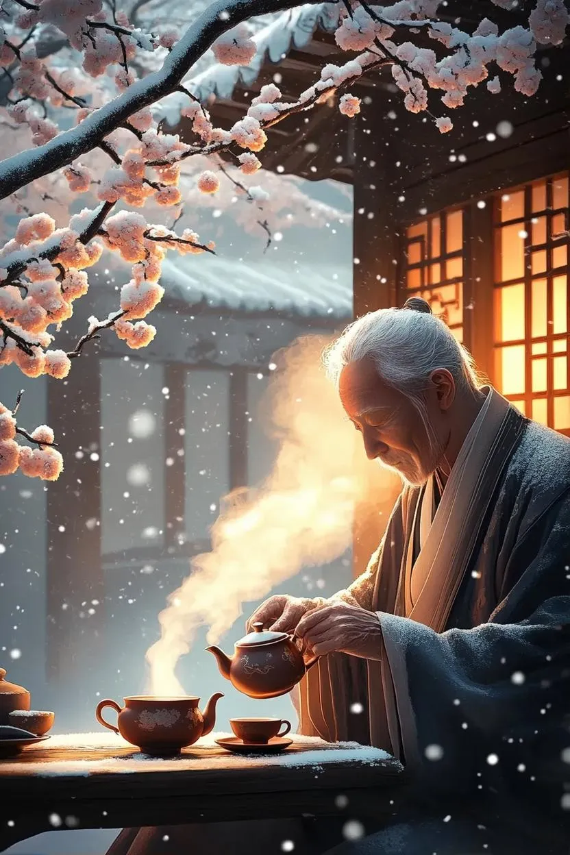 Craft serene Chinese-style AI art of a tranquil teahouse scene with our AI image generator. Transform text prompts into poetic visuals featuring elderly scholars, porcelain tea rituals, snow-kissed landscapes, and blooming plum blossoms. Experience traditional ink painting aesthetics with customizable effects for cozy winter ambiance and cultural storytelling.