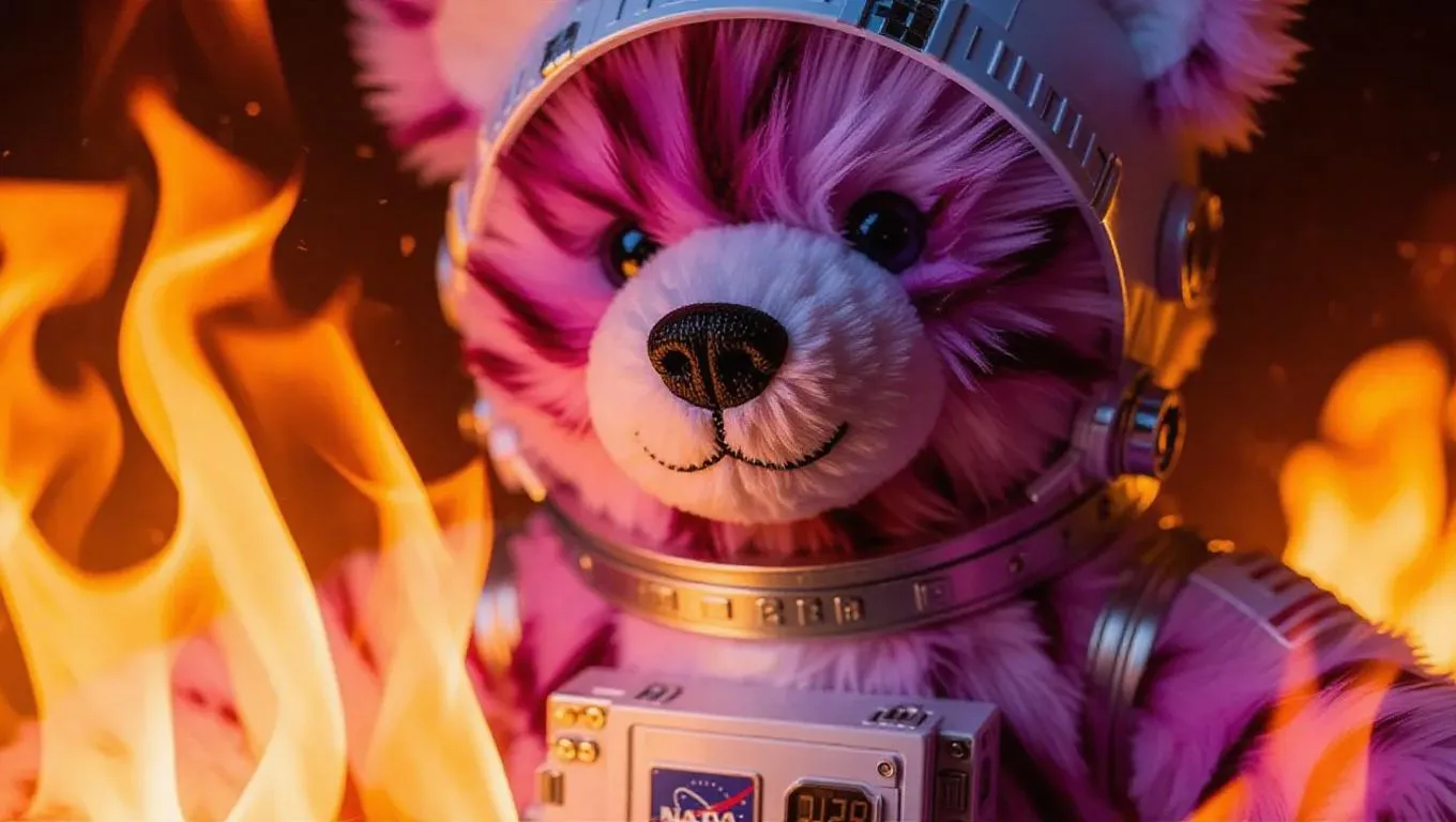 Full body, tiny cute little orange tabby cat with golden eyes, delicate eyelashes, blush on the cheeks, cute, cartoon, photorealism, strolling adorably on a minimalist runway, dressed in a sparkling silver jumpsuit with luminous blue accents, wearing trendy white boots, posing with a graceful stretch, surrounded by bright bubbles.