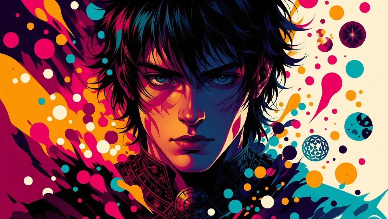 Discover AI-generated surreal art of Childe, blending vibrant elemental symbols and abstract shapes with muted tones. This contemplative portrait captures his mysterious, philosophical essence through striking contrasts and artistic abstraction, ideal for exploring Genshin Impact's enigmatic warrior in dynamic, thought-provoking visuals.