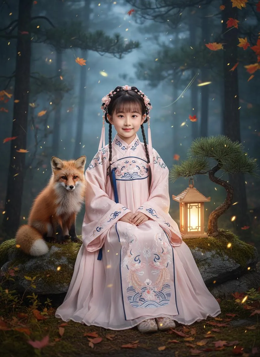 Create hyper-realistic 8K ancient Chinese portraits with Vivago.ai. Transform prompts into cinematic scenes: Hanfu-clad subjects with foxes & lanterns under magical forest nights. Studio lighting, falling leaves, and fireflies. Achieve professional art photography quality with AI-powered precision.