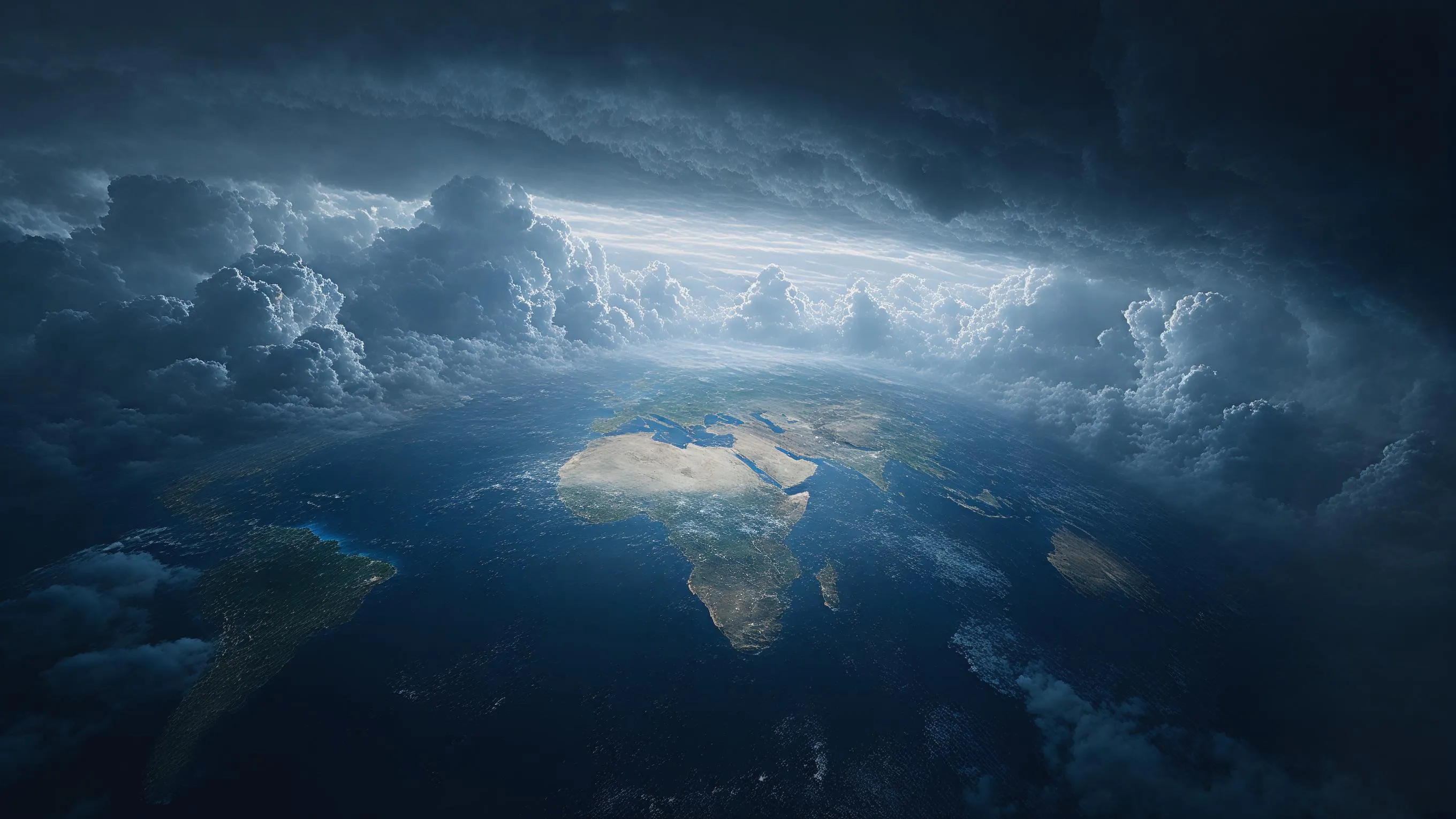 Visualize an apocalyptic planetary storm engulfing Earth with massive dark clouds. Experience AI-generated visuals of immense scale: helpless continents, dark cinematic atmosphere & imminent erasure. Create transformative, epic 16:9 visuals with VivaGo AI's image generator. Experience creation at cosmic scale. Explore AI-powered visual storytelling. (Word count: 49)
