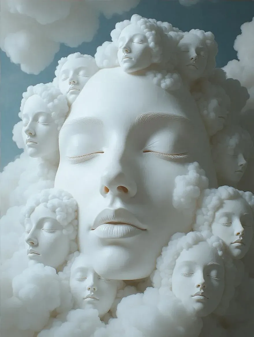 Transform text into mesmerizing AI-generated surreal cloudscapes with ethereal faces, blending Magritte's surrealism, Joan Mitchell's abstract expressionism, and James Jean's whimsy. Create dreamy visuals where soft, puffy clouds morph into subtle, expressive visages, inviting deeper exploration of AI-powered artistic realms.