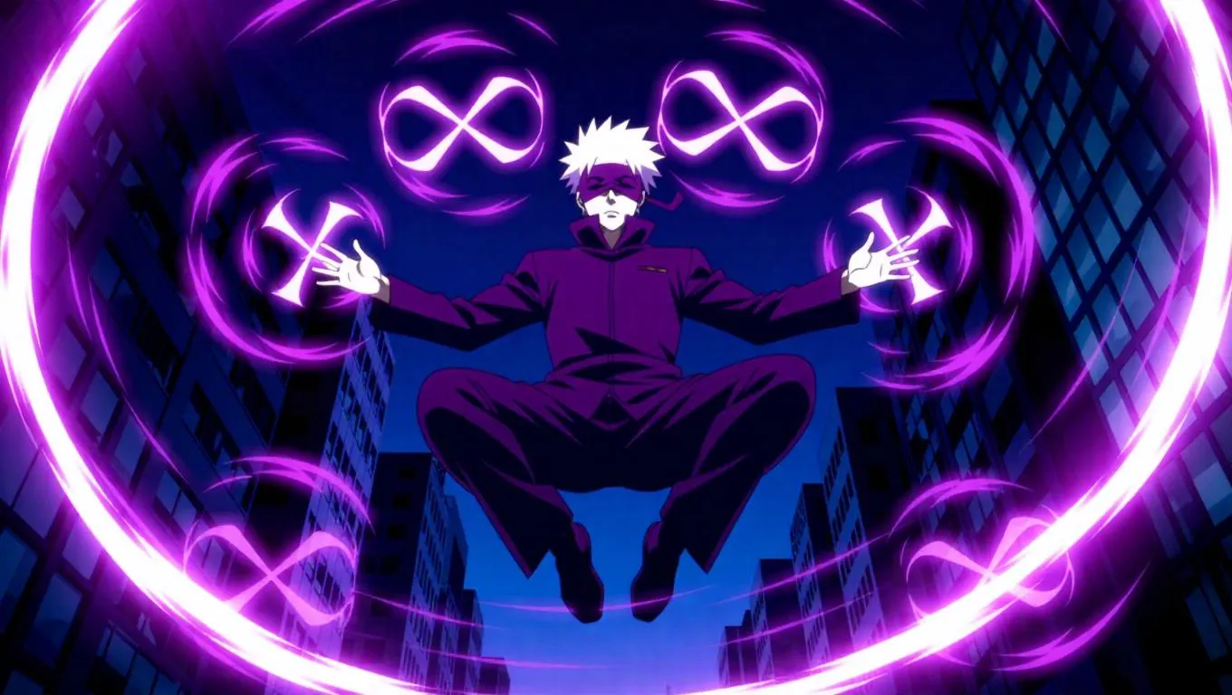 AI-generated Gojo Satoru artwork captures the Jujutsu Kaisen sorcerer mid-combat, levitating amid Shibuya's rubble with Reverse Cursed Energy lightning. Limitless violet barriers warp space as Hollow Purple's singularity dissolves curses into Edo-era calligraphy ashes. Six Eyes project ultraviolet equations, rewriting reality while crystallized diamond rain suspends mid-fall. Stunning AI-powered anime visuals with glowing infinity symbols and dynamic battle effects.