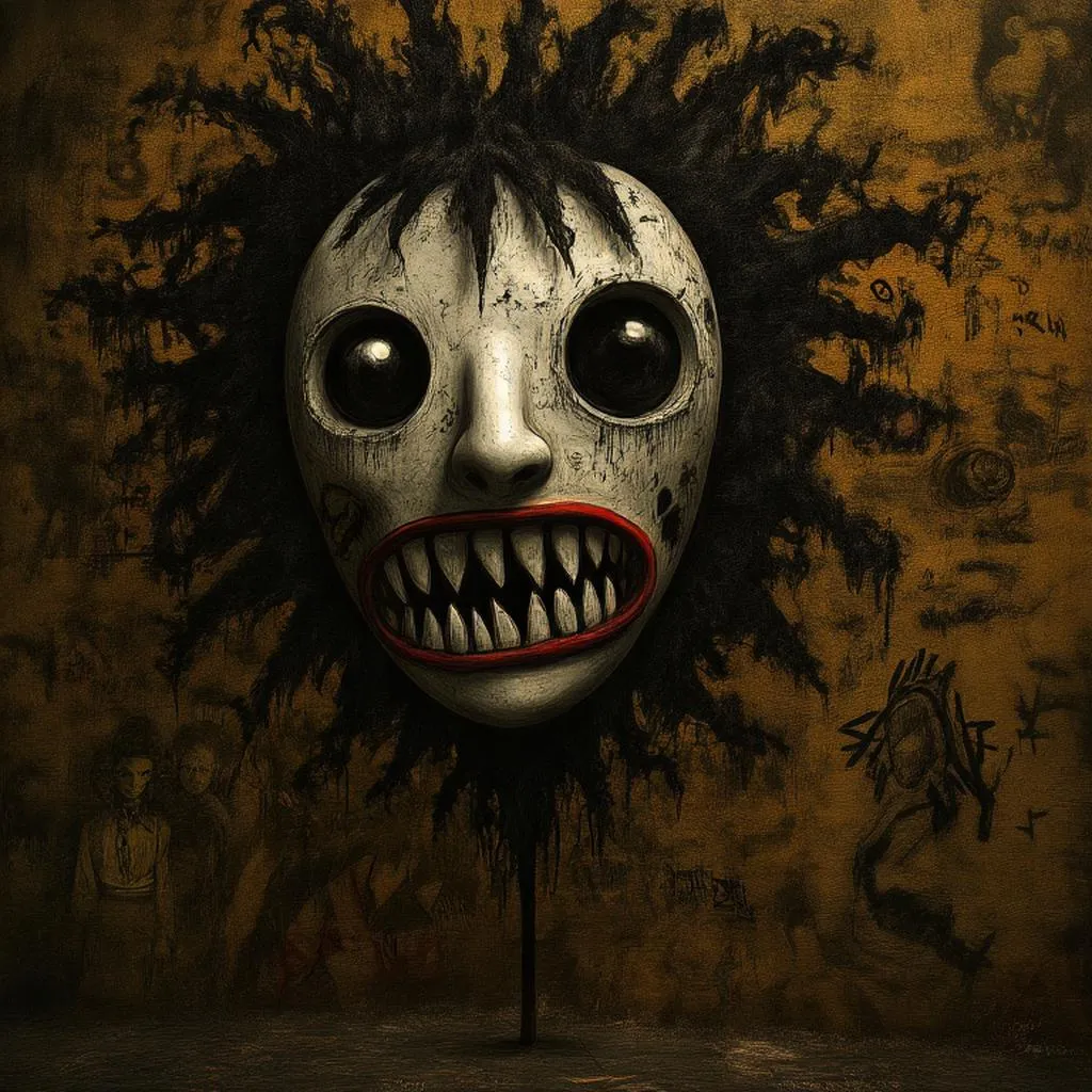 Generate AI art of a screaming horse in fractal graffiti deco. Fusion of Tim Burton, Basquiat painting style, Vogue cover. Features light/shadow dynamics, Hengdian Studio & Arcimboldo influences, Vintage Heavy Metal and Za Zen Manga culture. 8K resolution, Octane Render, Unreal Engine sharpened, Art Station quality AI image.