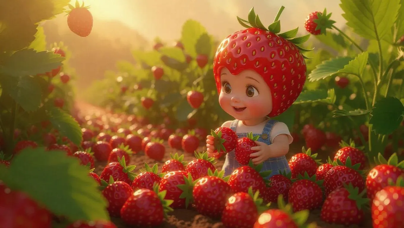 Create a whimsical AI-generated image of a charming strawberry-headed character harvesting berries in a vibrant strawberry field. Ideal for playful illustrations, children’s stories, and imaginative projects. Discover vivago.ai’s AI art tools for enchanting, professional-grade visuals blending creativity and cutting-edge technology.
