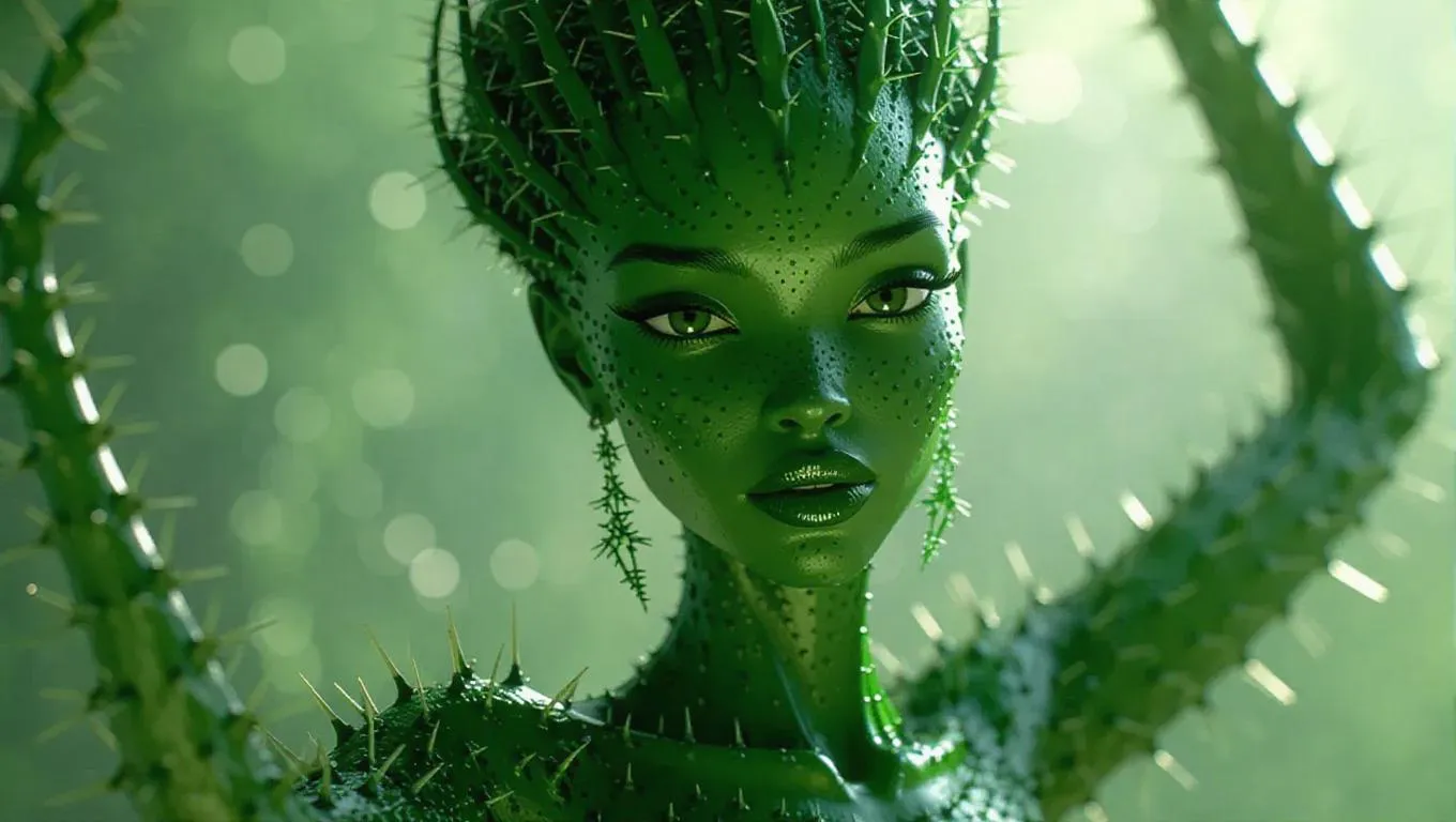 Experience the magical fusion of human grace and botanical wonder with this PIXAR-style cactus woman dancing in elegant slow-motion. Vibrant green hues, detailed spines, and textured skin shine under artistic lighting, blending fantasy character design with fluid animation. Discover otherworldly beauty through close-up details and seamless motion—transform your ideas into captivating AI-generated visuals with VivaGo.ai.