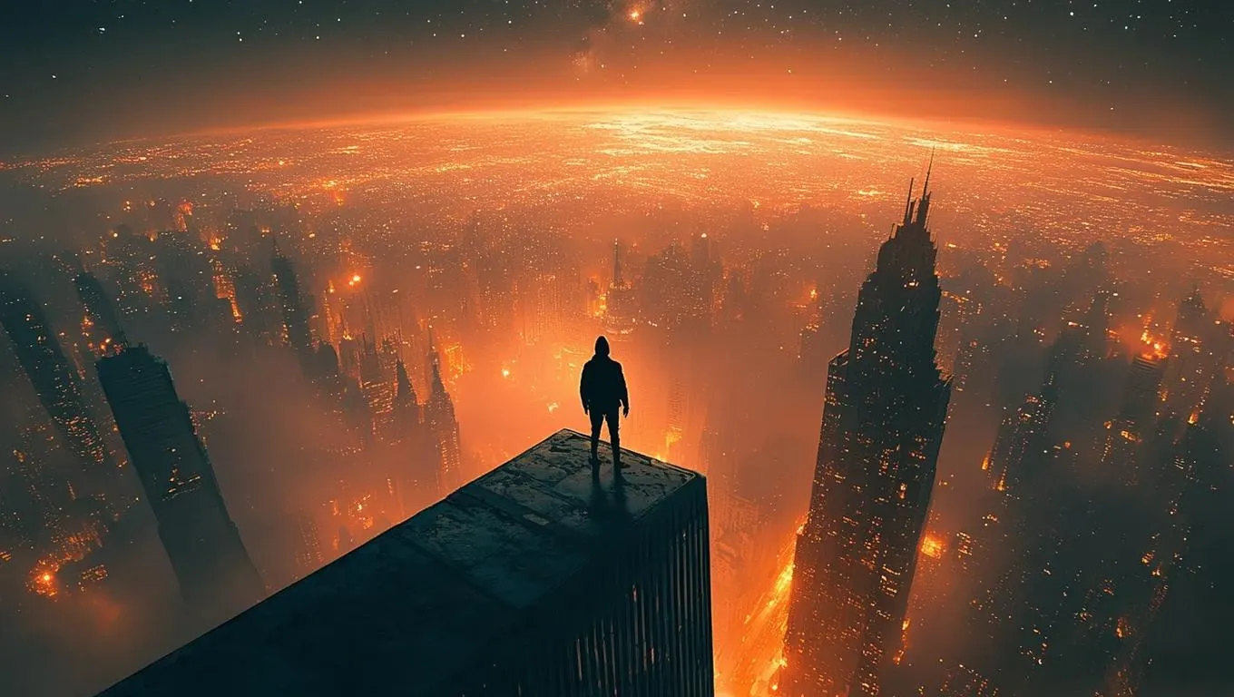 Create cinematic visuals with Vivago.ai's AI tools. Generate hyperrealistic, Hollywood-style scenes from text prompts—like a lone figure on a skyscraper ledge, glowing cityscape, ultra-wide lens, and deep cinematic lighting. Perfect for emotionally charged finales. Elevate storytelling with AI-powered image generation and professional editing.
