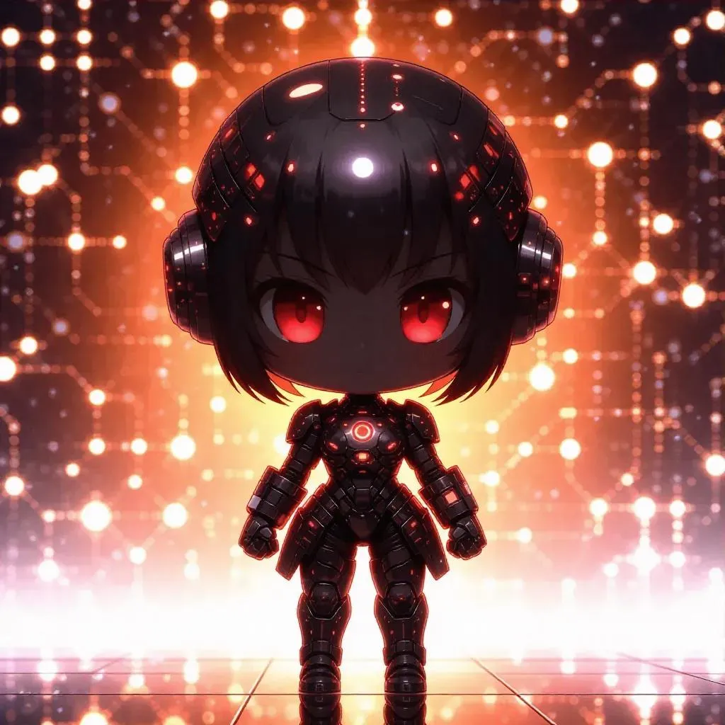 Generate a vibrant Frosted Circuit Chibi Alighie design with vivago.ai's AI image generator. Featuring a striking black, red, silver, and gold palette, this effect combines futuristic metallic accents with playful chibi aesthetics. Perfect for tech-themed art, gaming avatars, or digital content. Transform prompts into dynamic cybernetic designs using advanced AI tools for professional, eye-catching visuals.