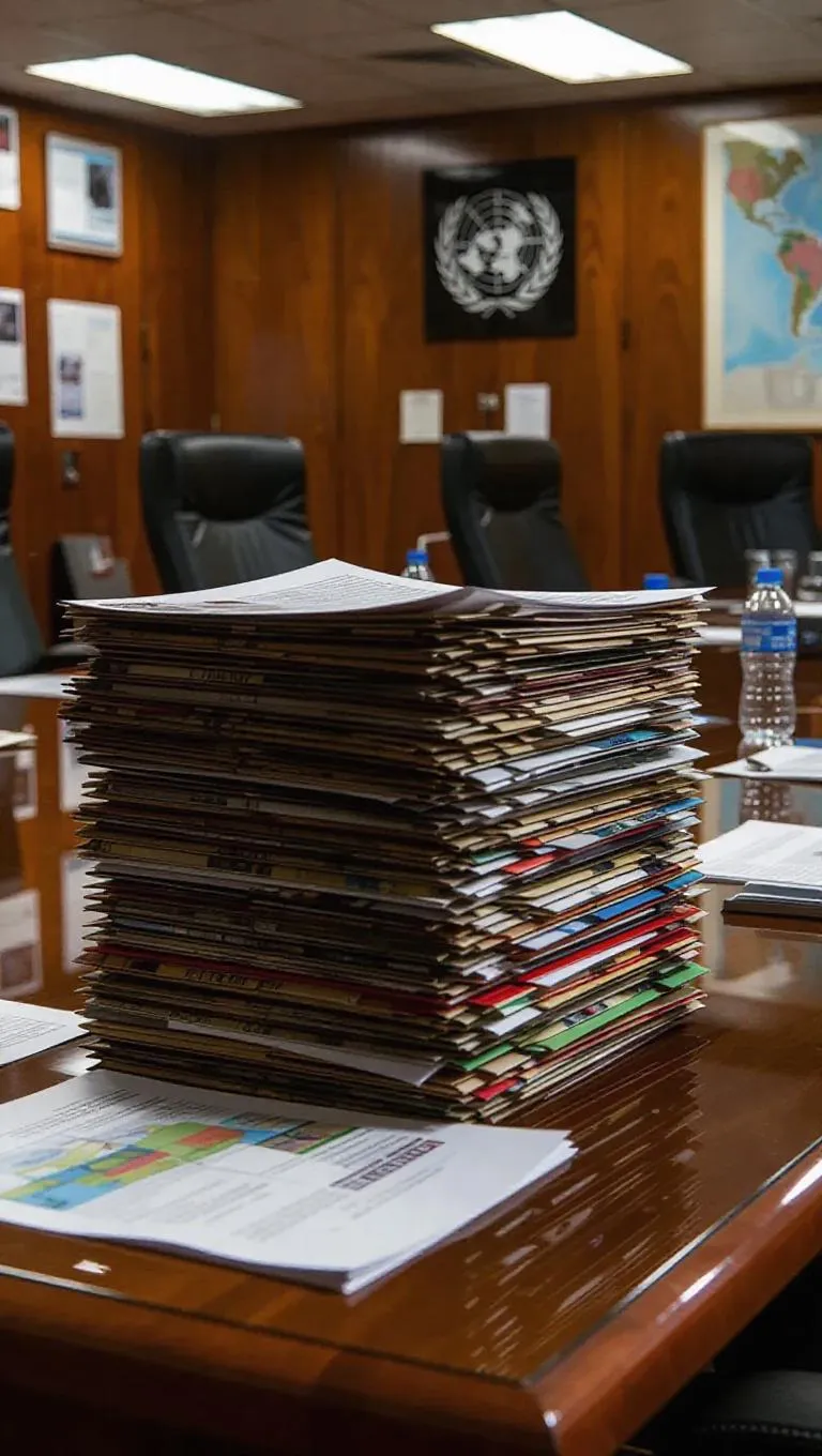 Generate AI comic book art depicting detailed UN reports on Congo's conflict zones and mining stats. Create bureaucratic scenes with empty chairs, maps, and dramatic shading using text-to-image AI tools for vivid, thought-provoking visuals.
