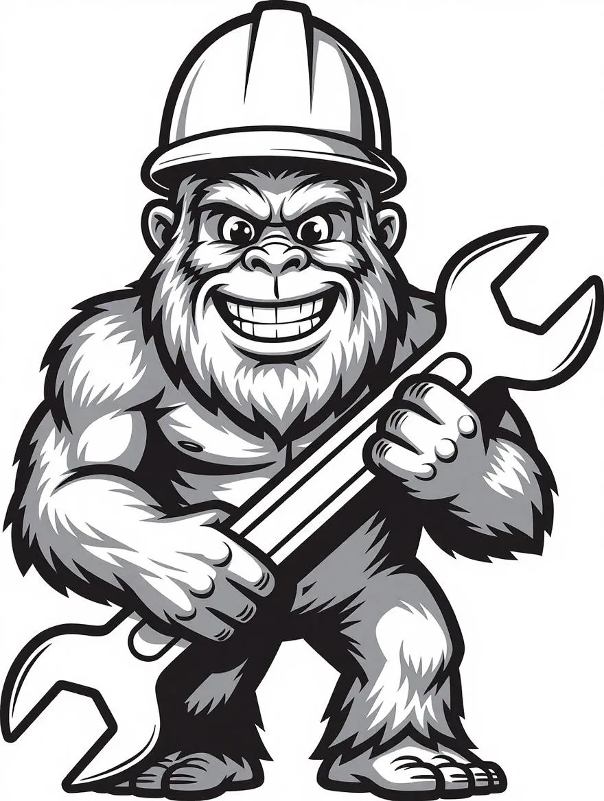 Create a professional Sasquatch logo with hardhat & wrench. AI-generated minimalist vector design in black & white. Ideal industrial mascot. Customizable via VivaGo AI. Free download.